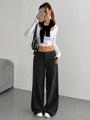 Casual Women's Front And Back Pockets Loose Solid Color Pockets Mopping Wide Leg Pants