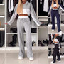 Colorblock Hood Contrast Color Sweatshirt Lace-up Trousers Suit
