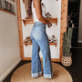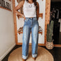 Fashion Leisure Washed-out Elastic Mid-waist Straight Jeans