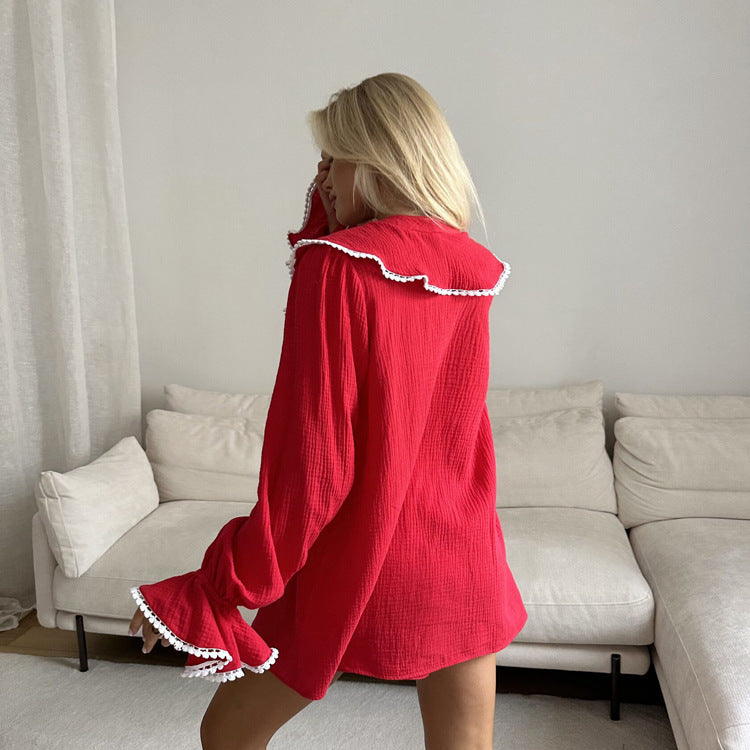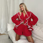 Lace V-neck Flared Sleeves Top And Shorts Two-piece Set